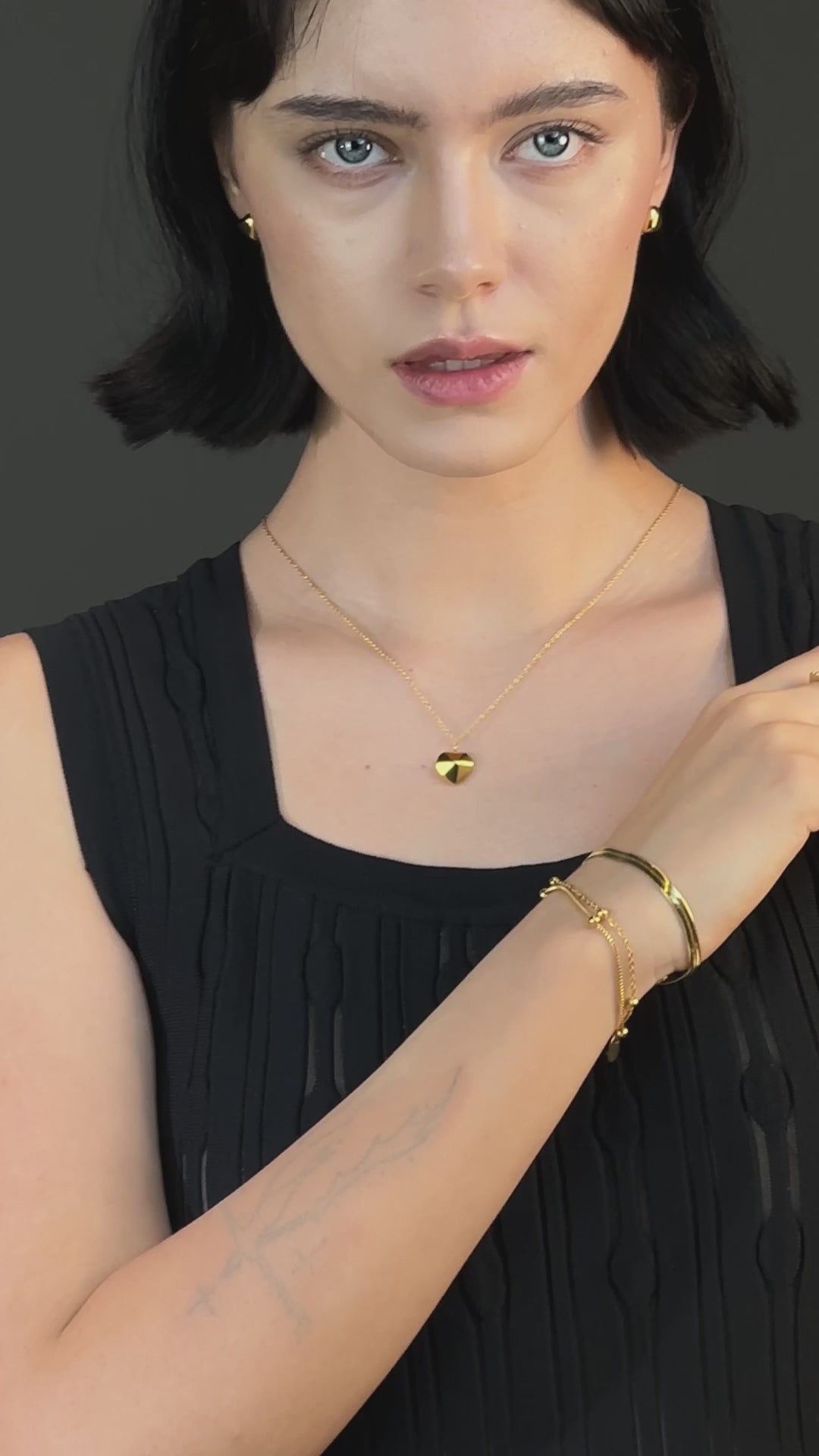The Facet Heart Pendant is a modern take on the classic heart shape, featuring clean, faceted lines that create a sleek and reflective surface. The geometric design highlights the pendant’s elegance and simplicity, making it versatile for any occasion. This contemporary piece radiates charm, symbolizing love in its purest and most stylish form.